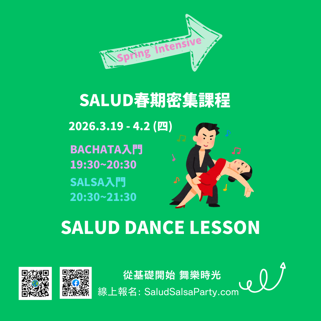 Salsa & Bachata 春期密集課程 Salsa & Bachata 密集課程 招生中!2026 SALUD Intensive Course課程資訊BACHATA課程日期:3/19, 3/26, 4/2(星期四)